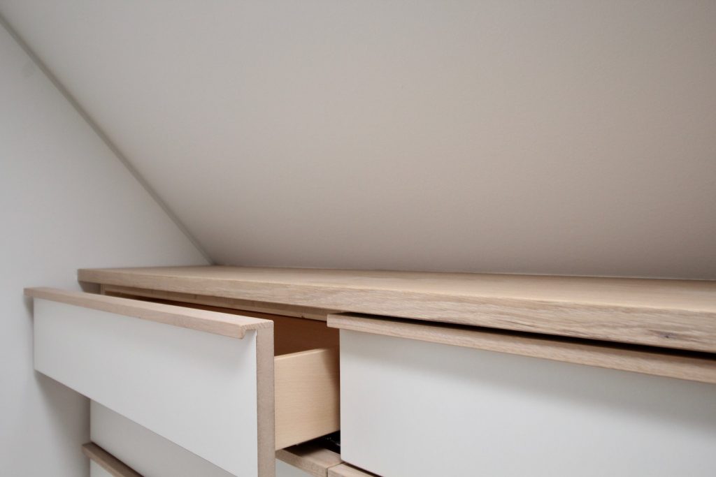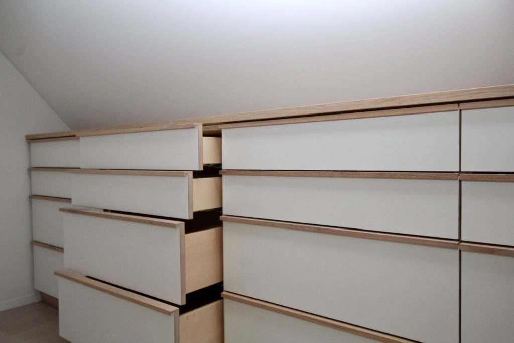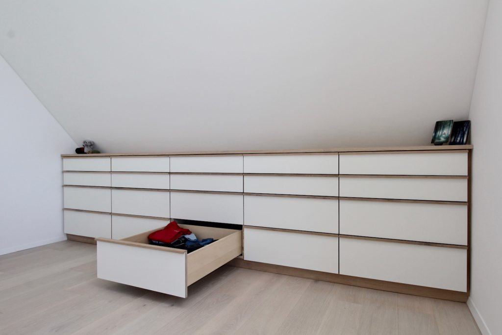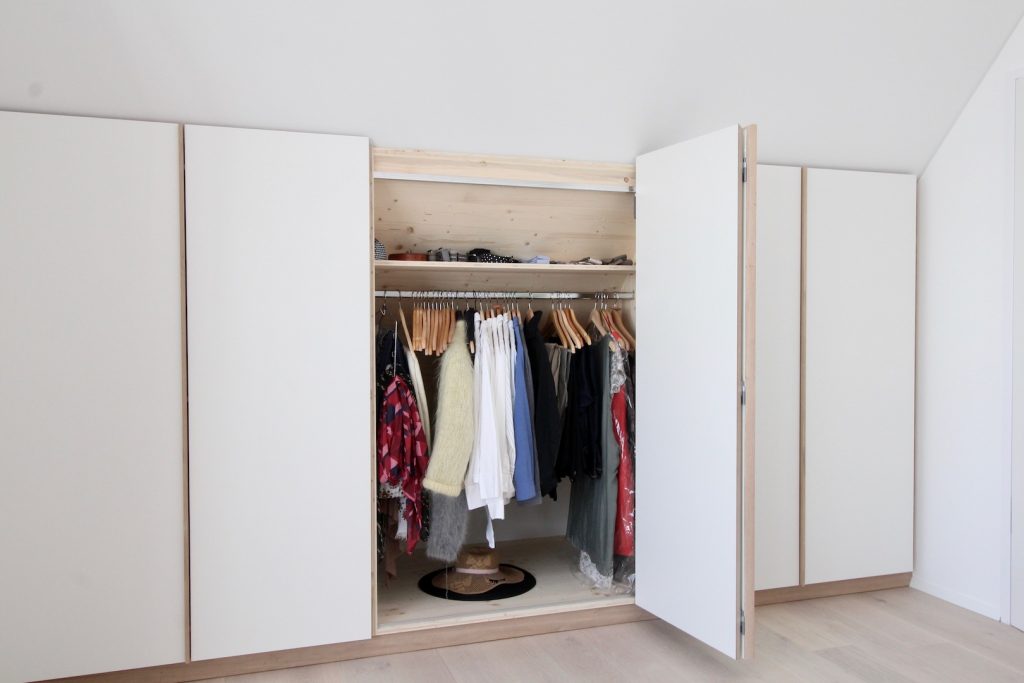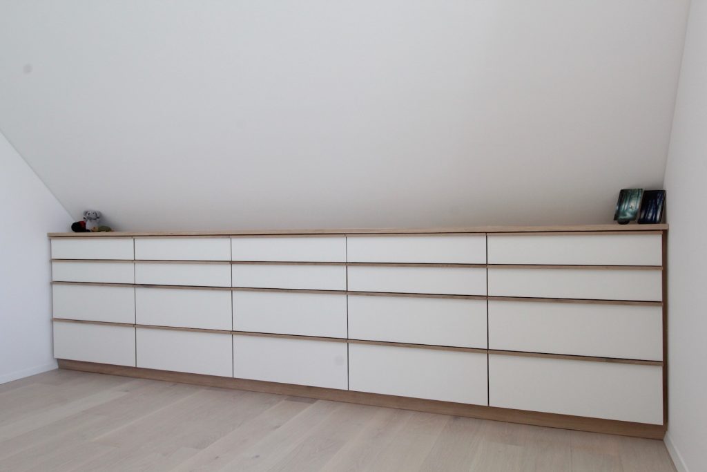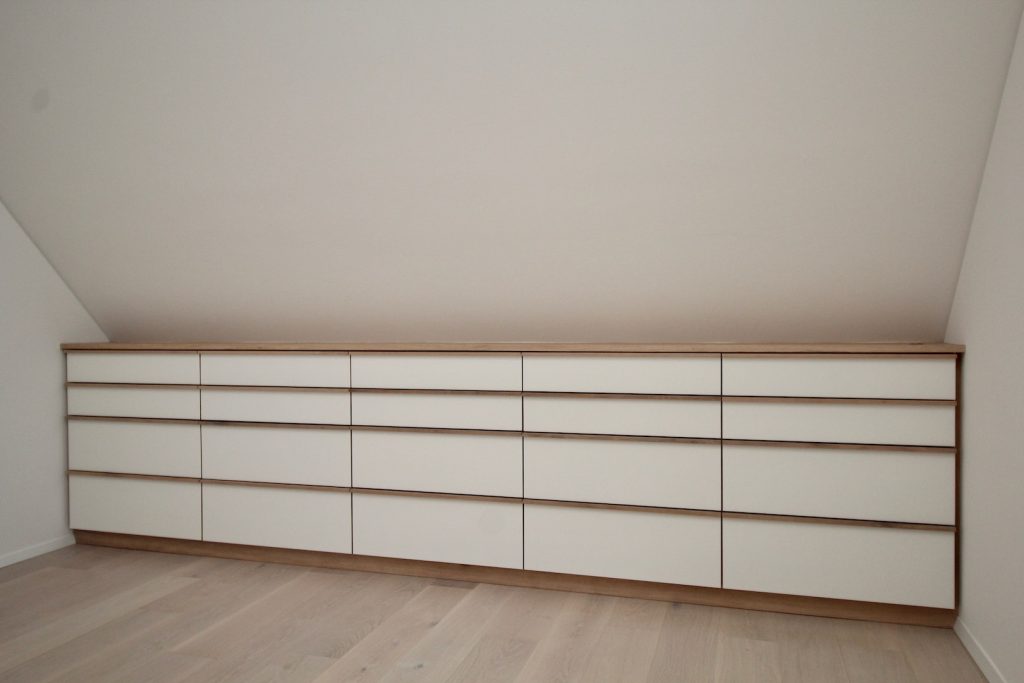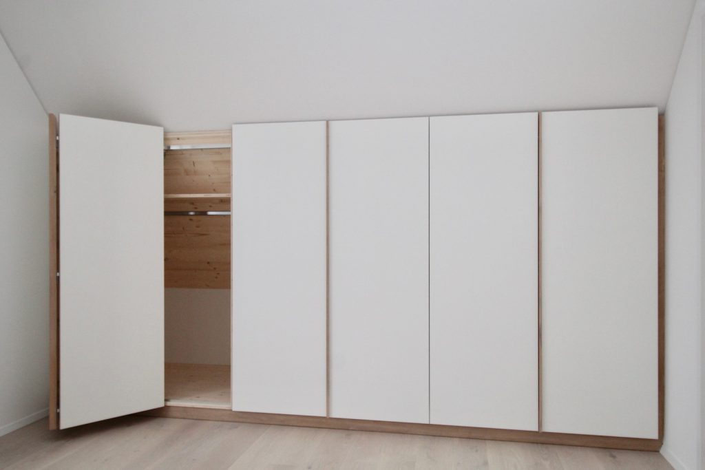 Schlicht und Praktisch bieten diese eingepassten Schränke reichlich Platz!