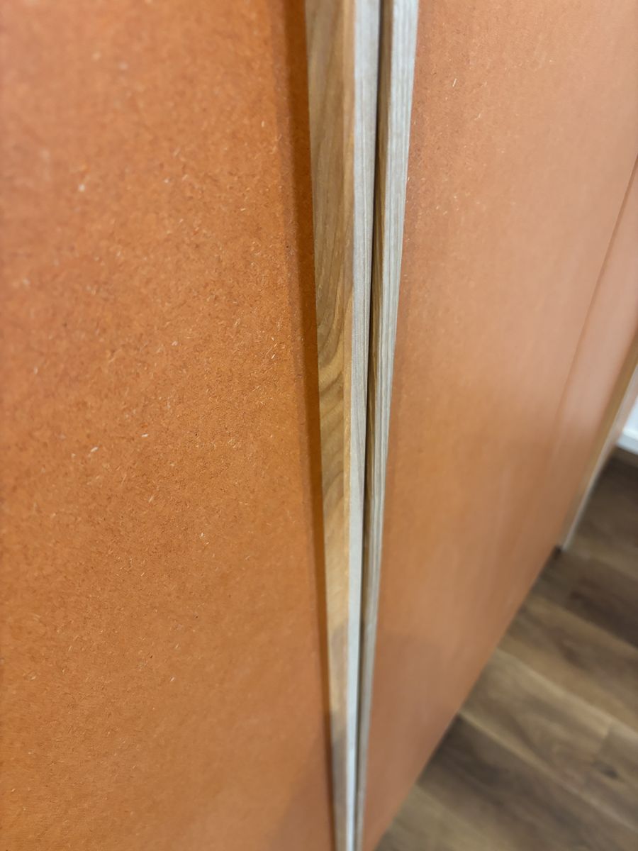 Auch die Materialwahl war Teil des gestalterischen Konzepts: Massivholz in Esche bringt Natürlichkeit und Wärme ins Büro, die orangefarbenen Fronten aus durchgefärbtem MDF der Firma Valchromat setzen selbstbewusste Akzente.