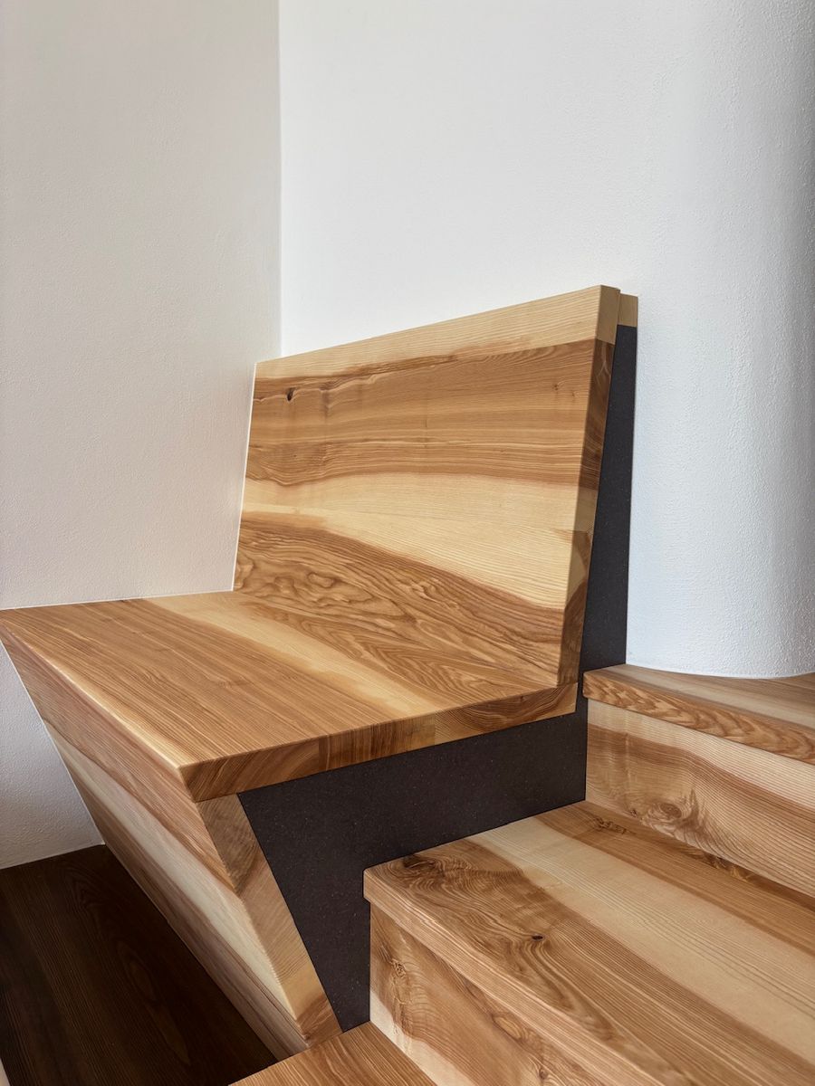 Das Highlight: Das wunderschöne Eschenholz für Möbel und Boden stammt aus dem eigenen Wald der Bauherren.