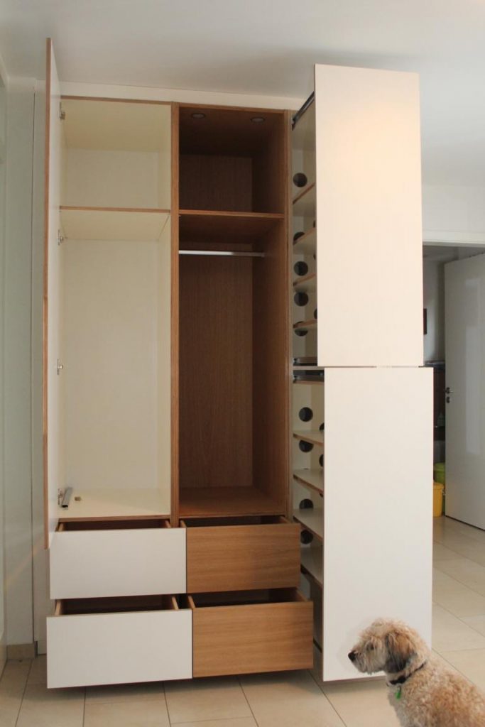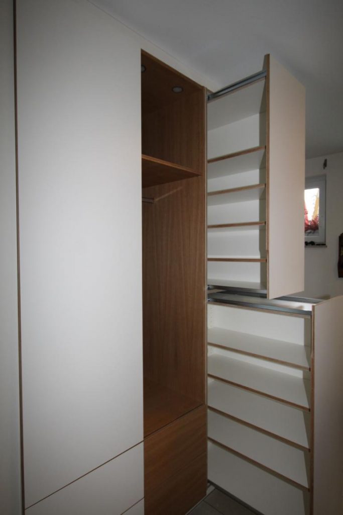 Die ausziehbaren Regale bieten reichlich platz für Schuhe.