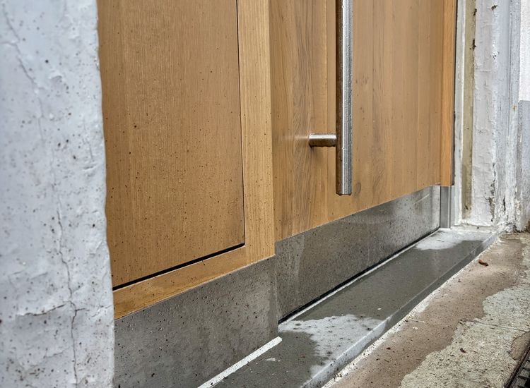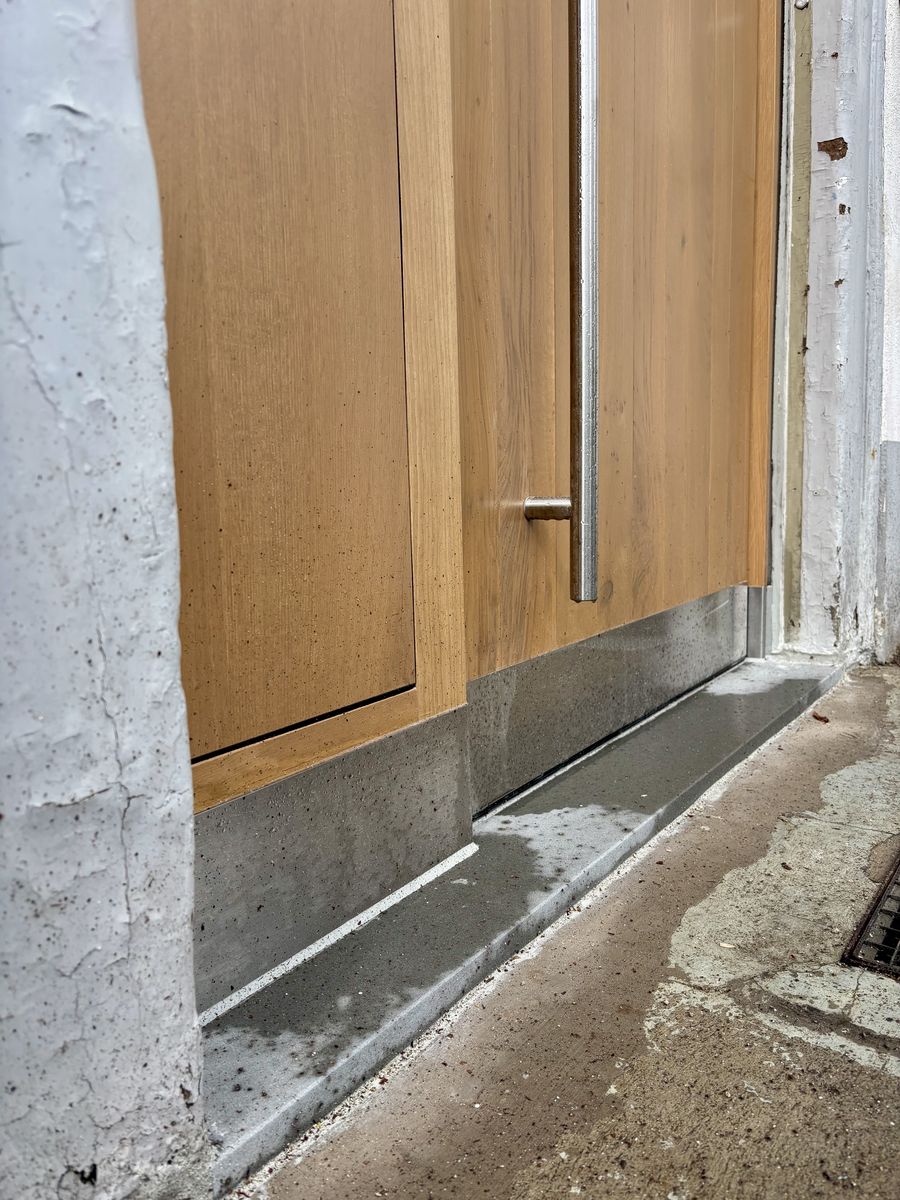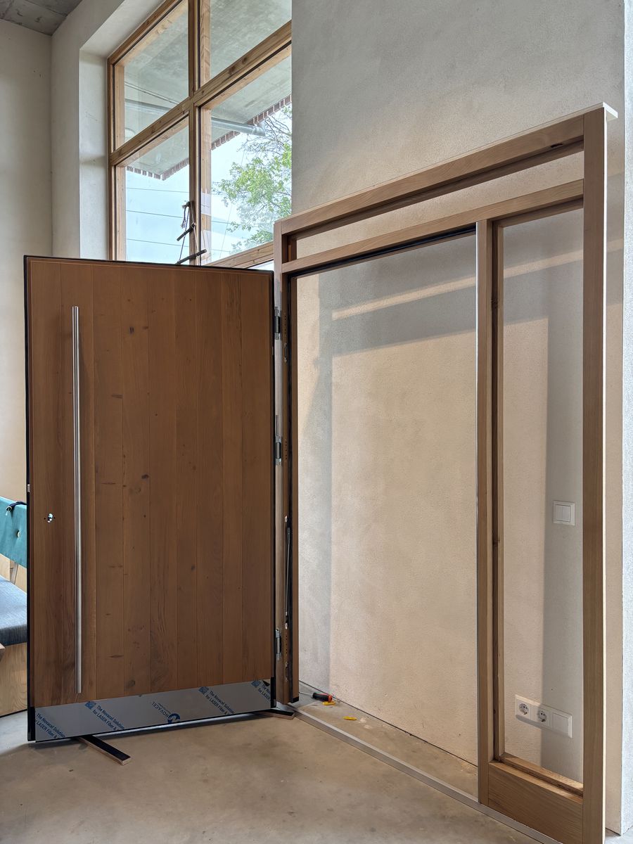 Da die Türe sowohl starken Witterungseinflüssen als auch einer hohen täglichen Beanspruchung ausgesetzt ist, entschieden wir uns für eine besonders widerstandsfähige Bauweise: