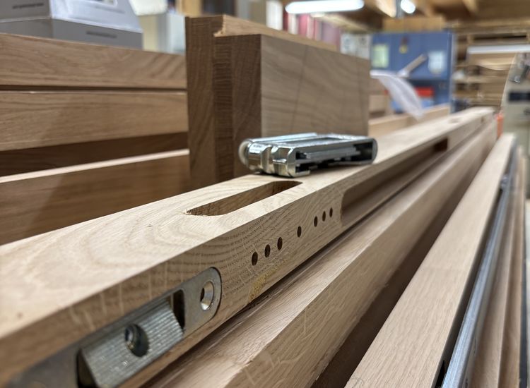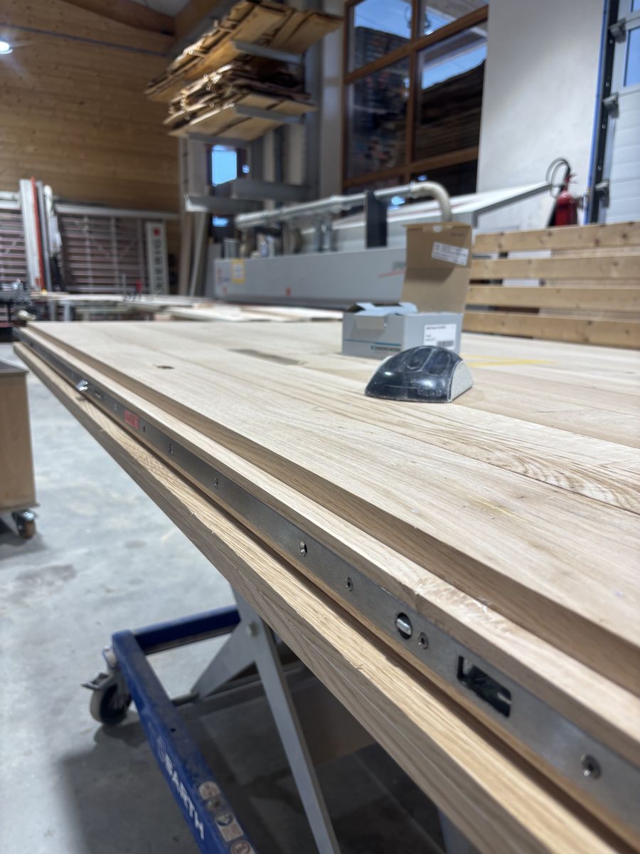 Sie besteht aus mehreren massiven Holzschichten aus Eiche, was ihr Langlebigkeit, Stabilität und eine hochwertige Optik verleiht.