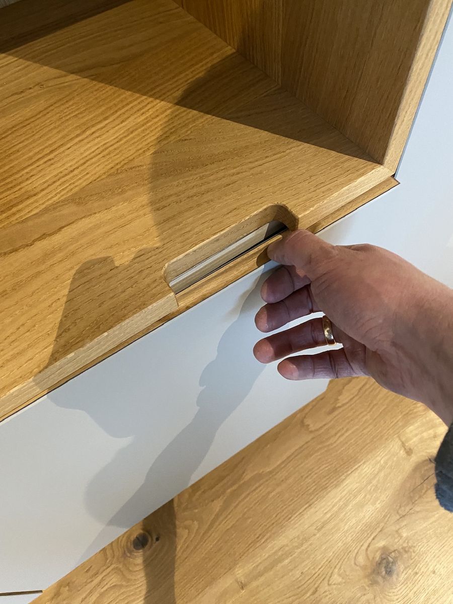 - Die offenen Ablagen sind aus Eichenholz angefertigt.