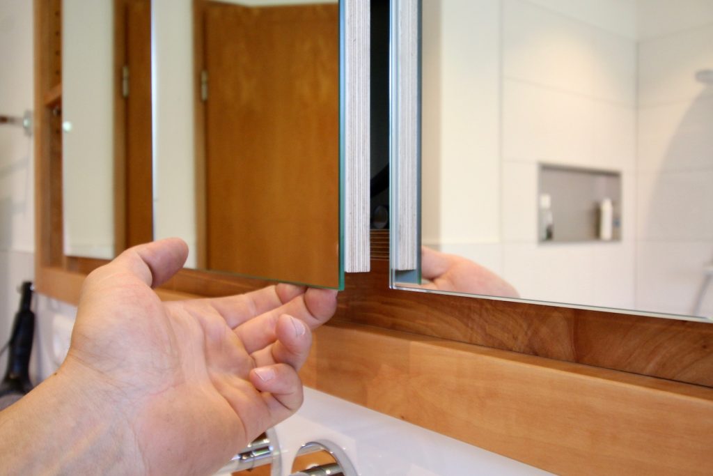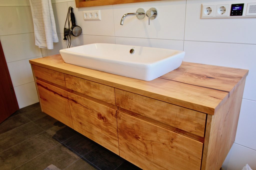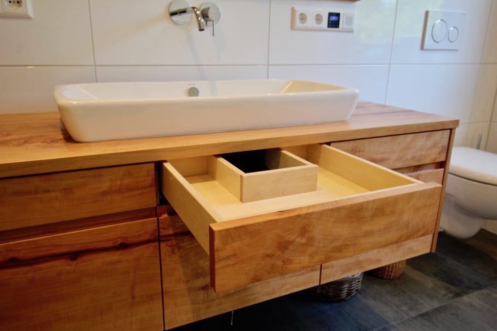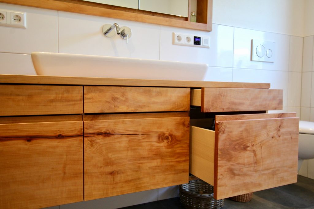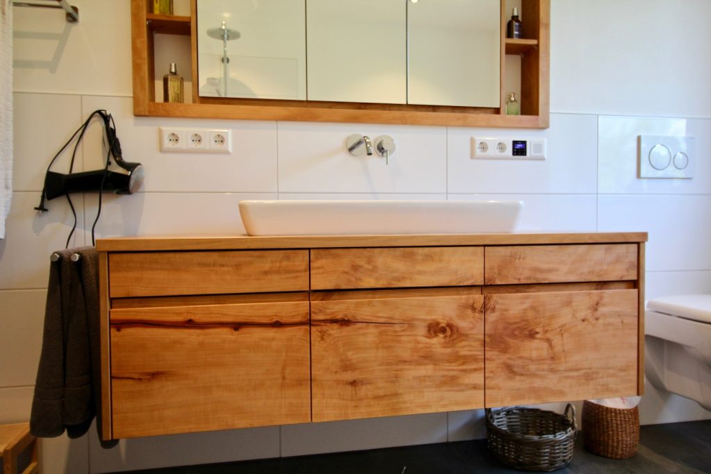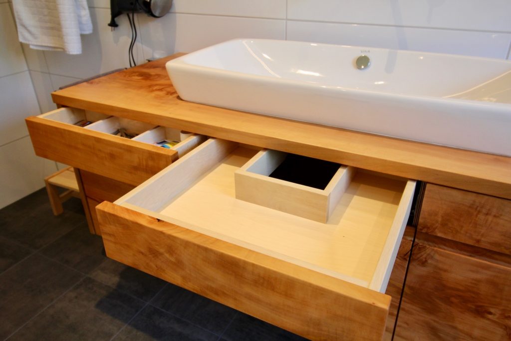 In diesem Badezimmer durften wir praktische Möbel planen und fertigen.
